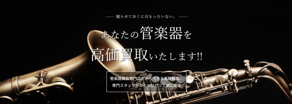 | 管楽器堂 | 管楽器専門の買取店で、サックス・トランペット・フルート等に対する豊富な実績あり。 出張・店舗・宅配いずれも対応、全国どこでも無料査定可能。 |