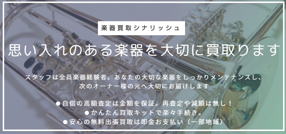 - 買取対象の幅:弦楽器・管楽器・打楽器・音響機器など