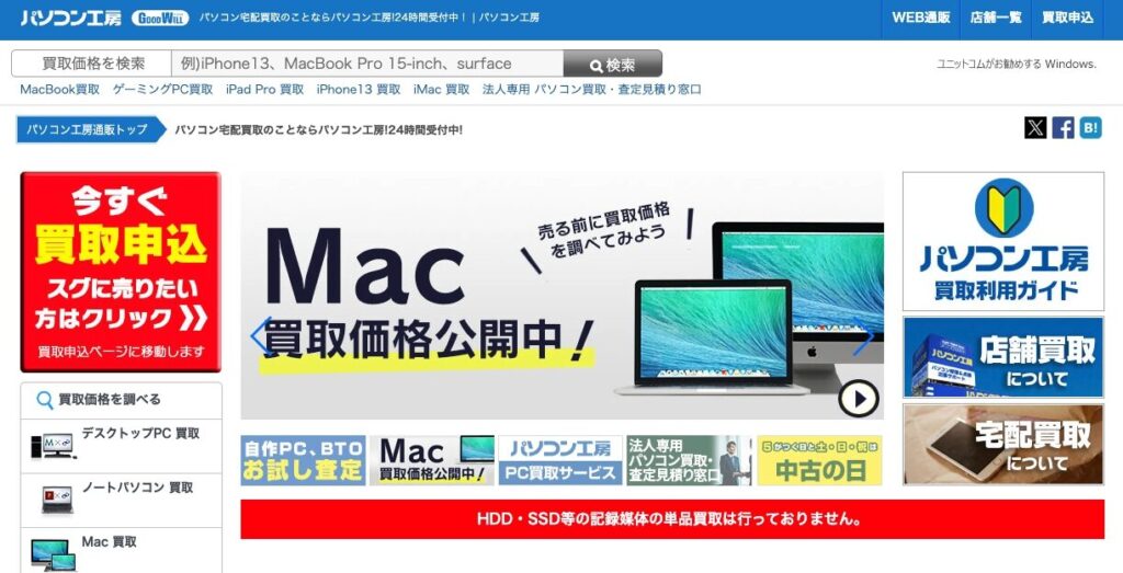 パソコン工房 | ・パソコン専門店による買取 ・BTO/自作/パーツを含む買取に対応 |
