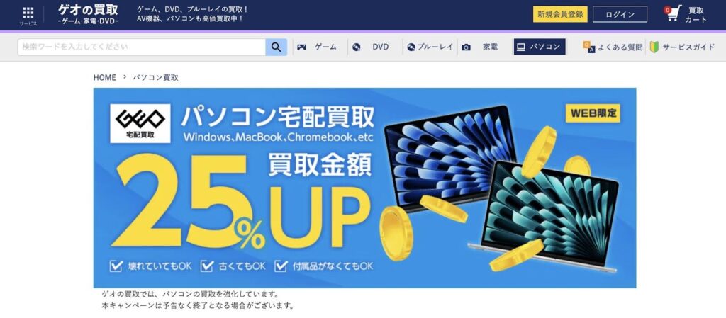 買取単体はもちろん、パソコン買い替え時の下取りにも対応しています。